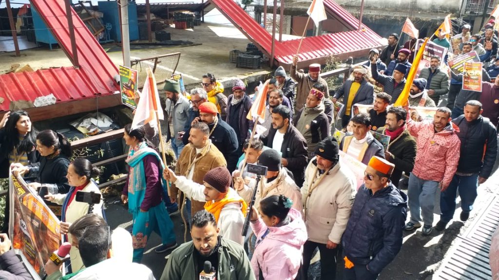 शिमला। UGC के नए नियमों के ख़िलाफ़ देश भर में आंदोलन तेज होता हुआ नज़र आ रहा है. शिमला में देवभूमि क्षत्रिय संगठन और राष्ट्रीय देवभूमि पार्टी ने हिमाचल BJP प्रदेश कार्यालय का घेराव किया. इस दौरान केंद्र सरकार के ख़िलाफ़ ज़ोरदार नारेबाज़ी की. प्रदर्शन के दौरान राष्ट्रीय देवभूमि पार्टी नेता और कार्यकर्ता हाथों में हथकड़ी के साथ शरीर पर ज़ंजीरें बांधे नज़र आए. राष्ट्रीय देवभूमि पार्टी के अध्यक्ष रूमित सिंह ठाकुर ने कहा कि केंद्र सरकार नए नियमों के ज़रिए सामान्य वर्ग के छात्रों के साथ भेदभाव कर रही है. यह संविधान के अनुच्छेद-14 के ख़िलाफ़ है. उन्होंने कहा कि सामान्य वर्ग के छात्रों को बिना किसी अपराध जेल में डालने की तैयारी की जा रही है.